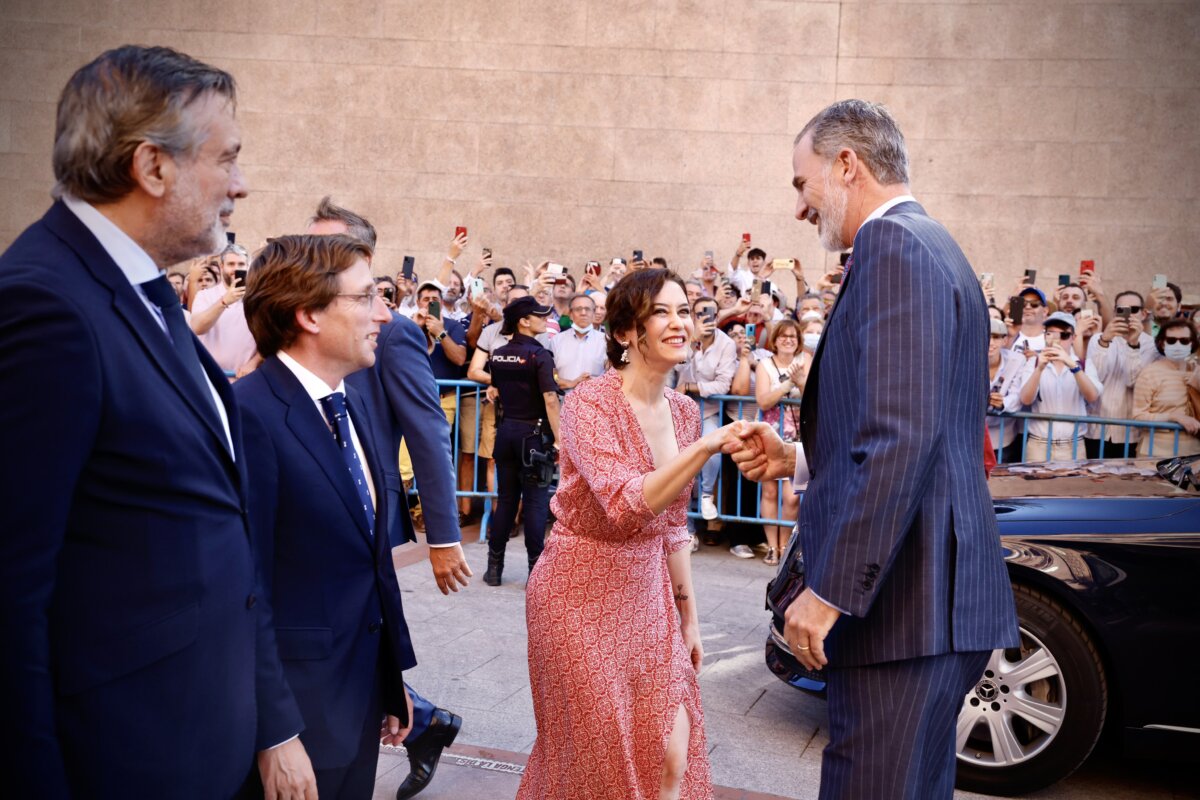 El rey Felipe VI junto a Isabel Díaz Ayuso, Enrique López y Antonio Bañuelos