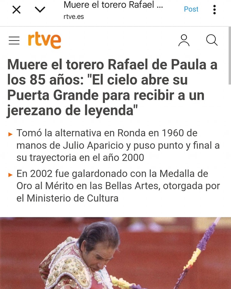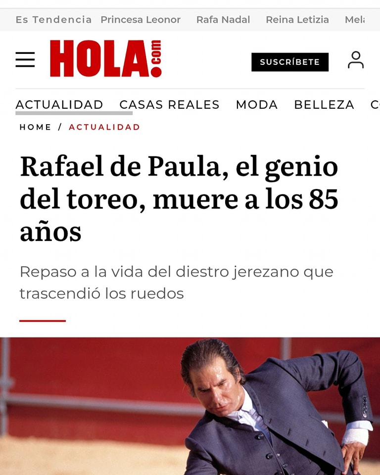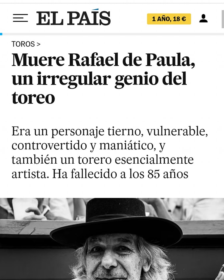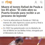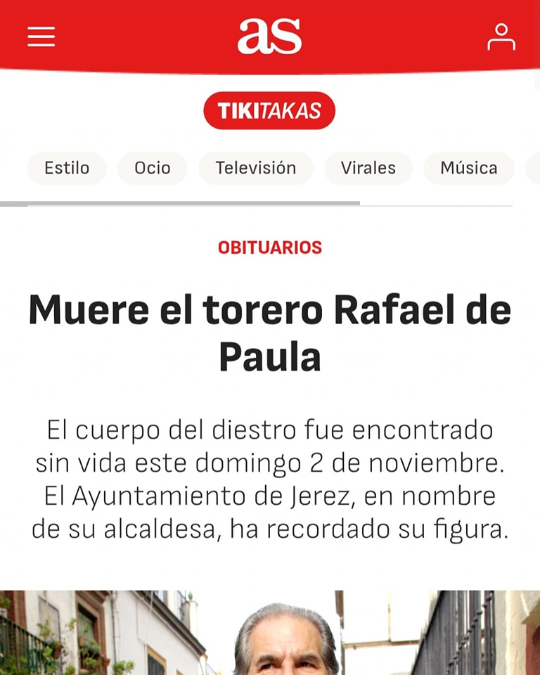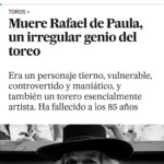 La muerte de Rafael de Paula en los medios generalistas españoles