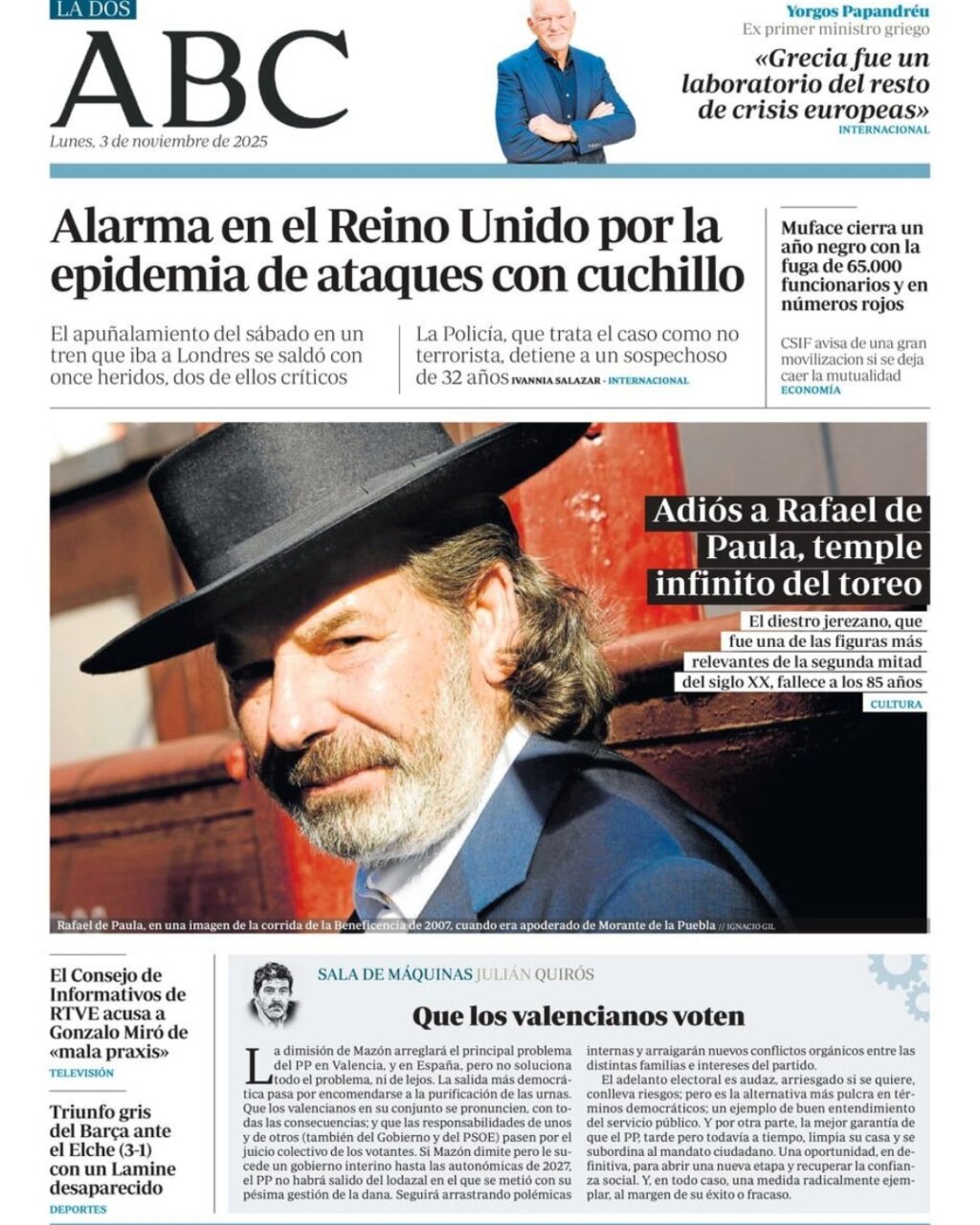 La muerte de Rafael de Paula copa las portadas de la prensa nacional