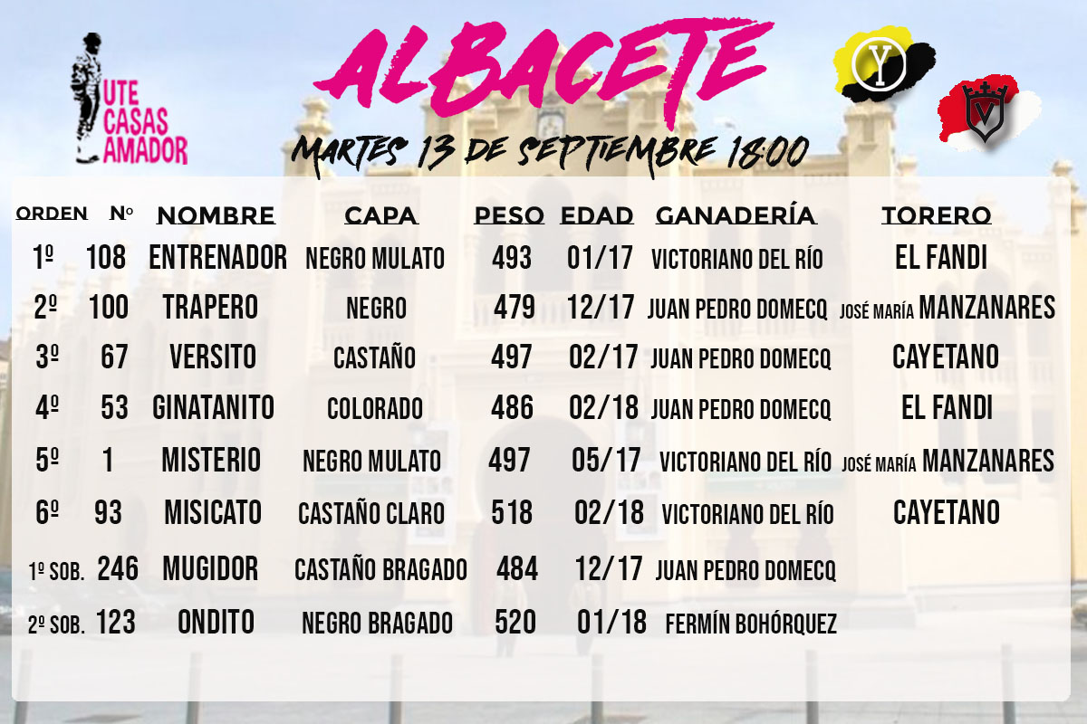 Listos los toros para el duelo entre Victoriano del Río y Juan Pedro Domecq en Albacete