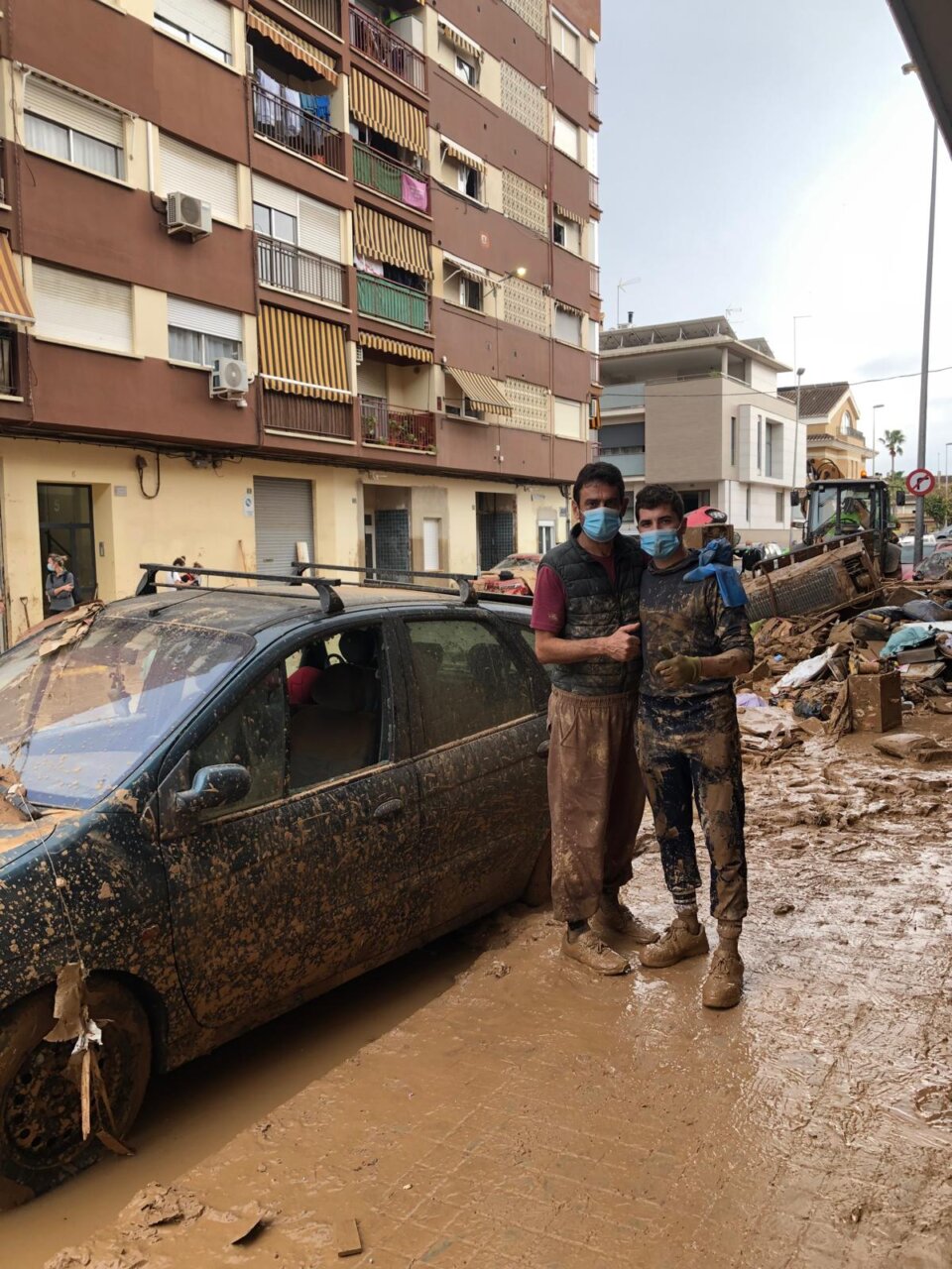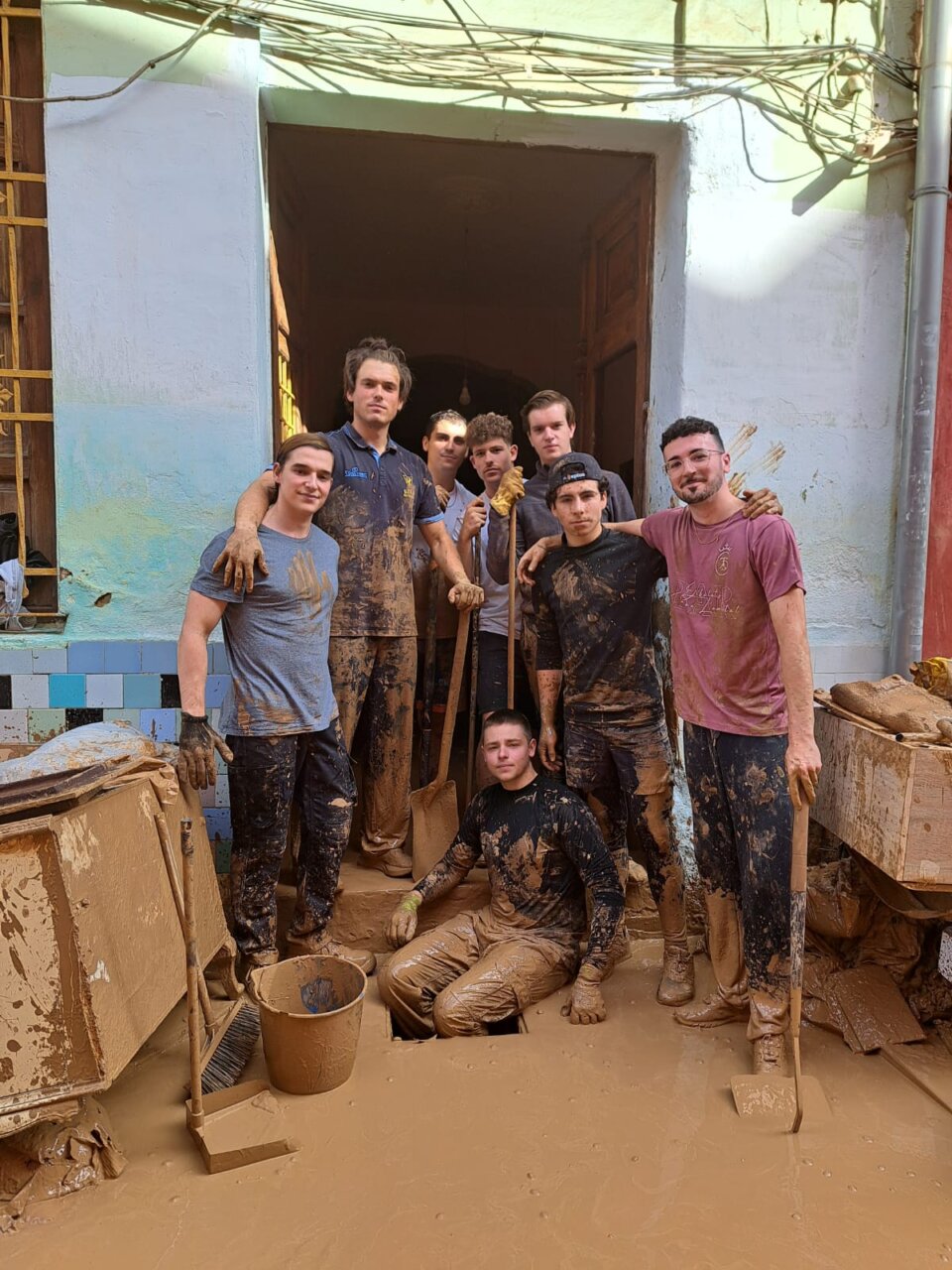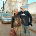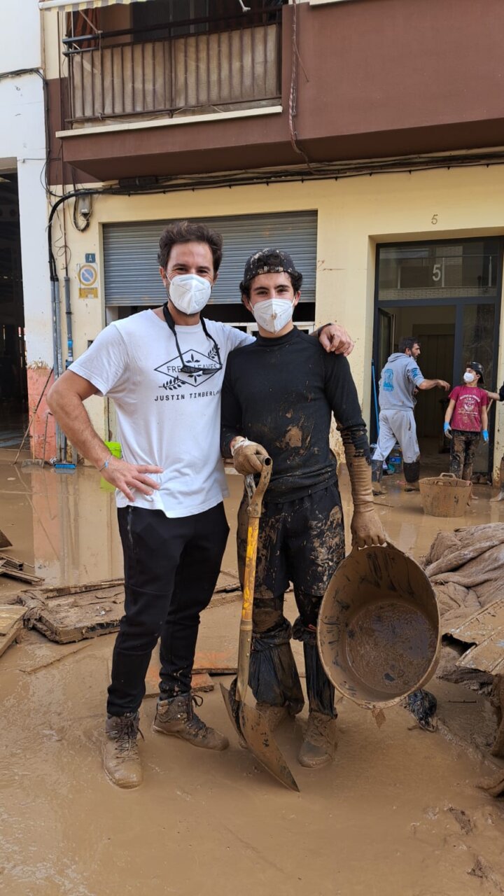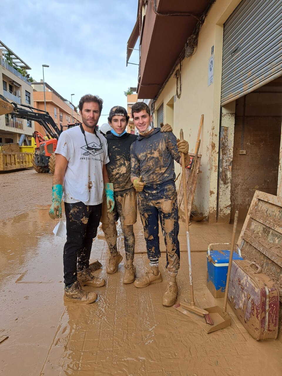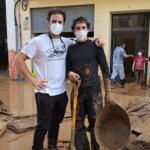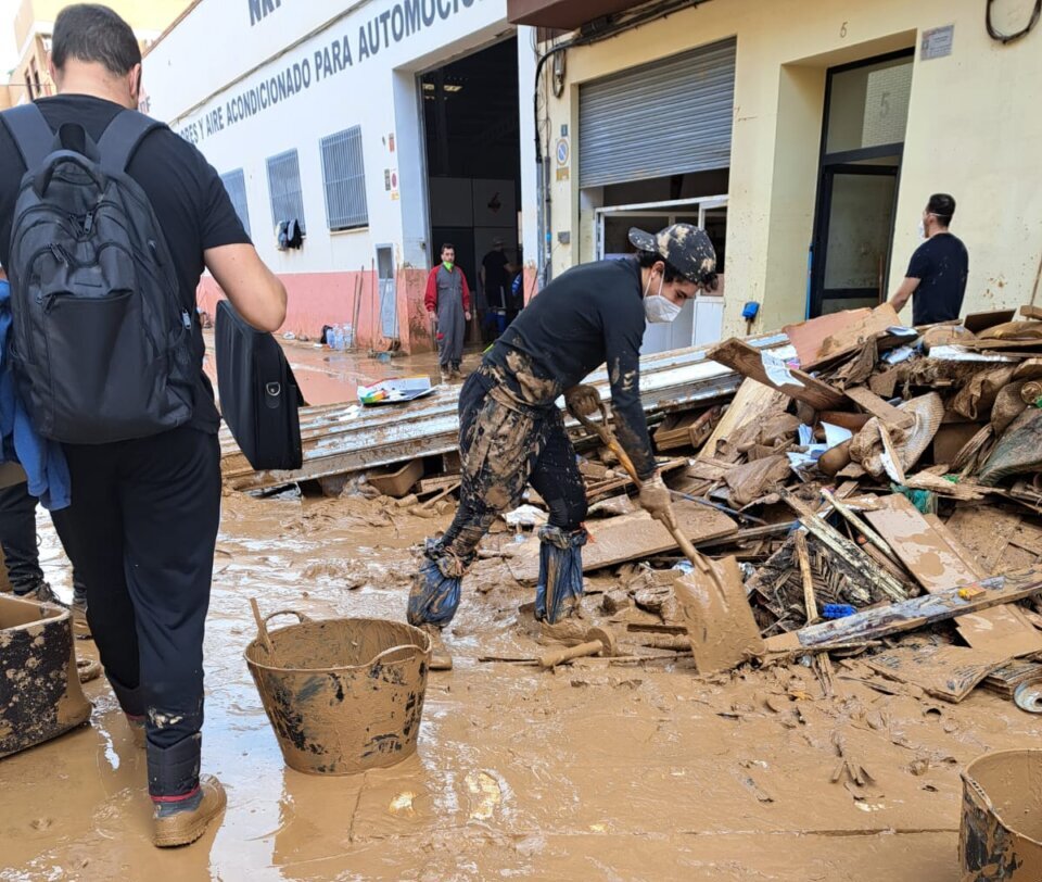 Vicente Barrera, ayudando a limpiar el barro en Catarroja.