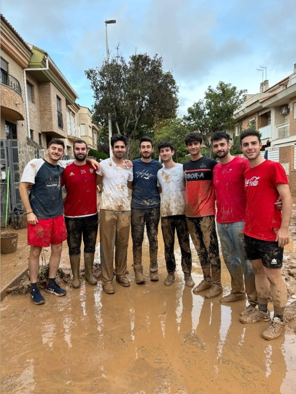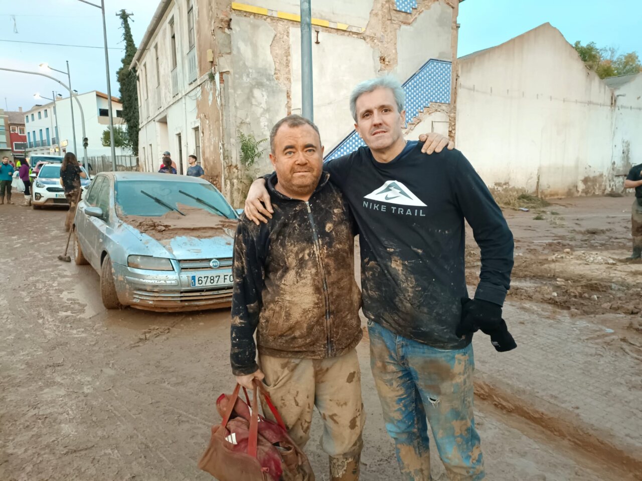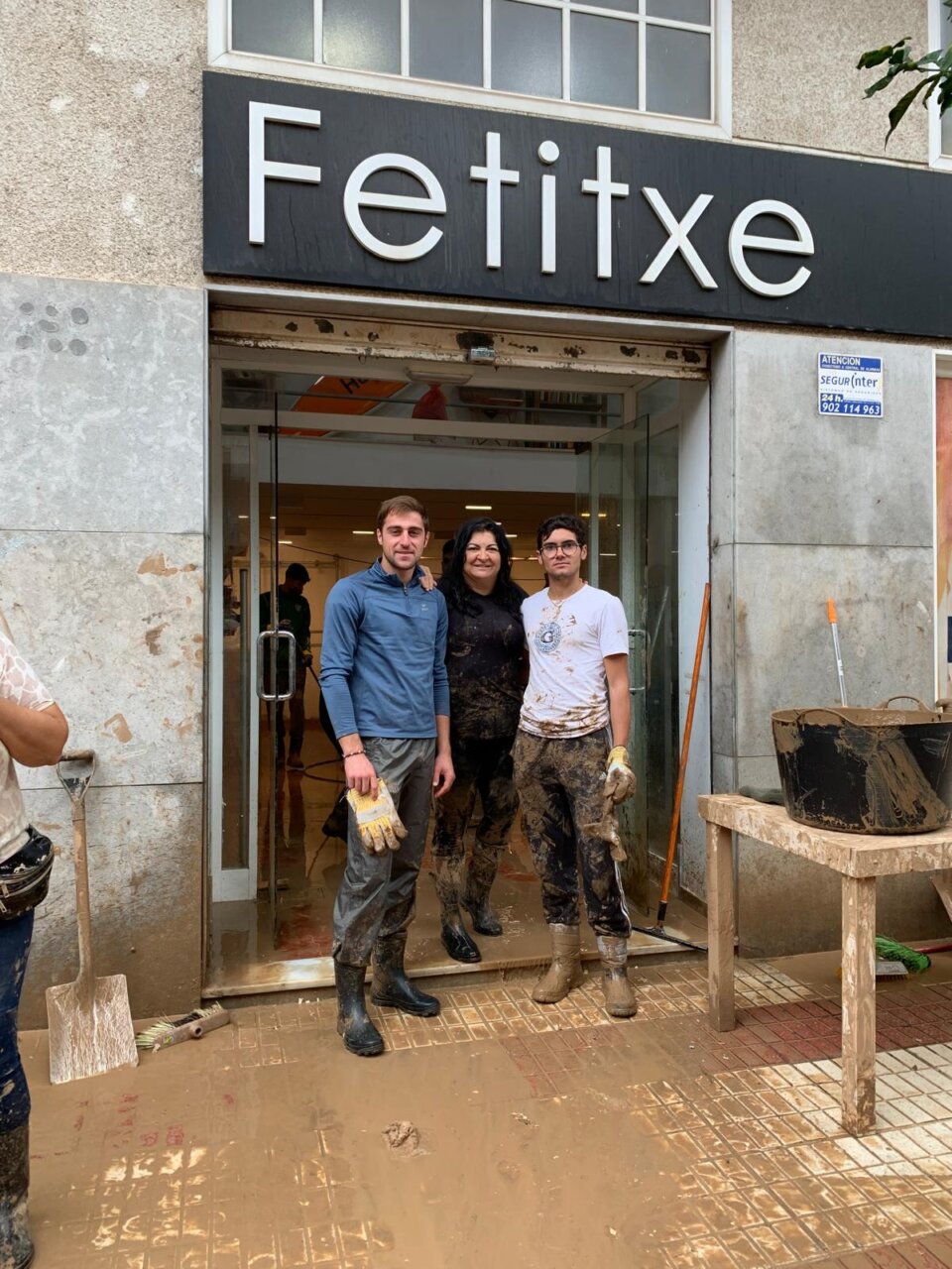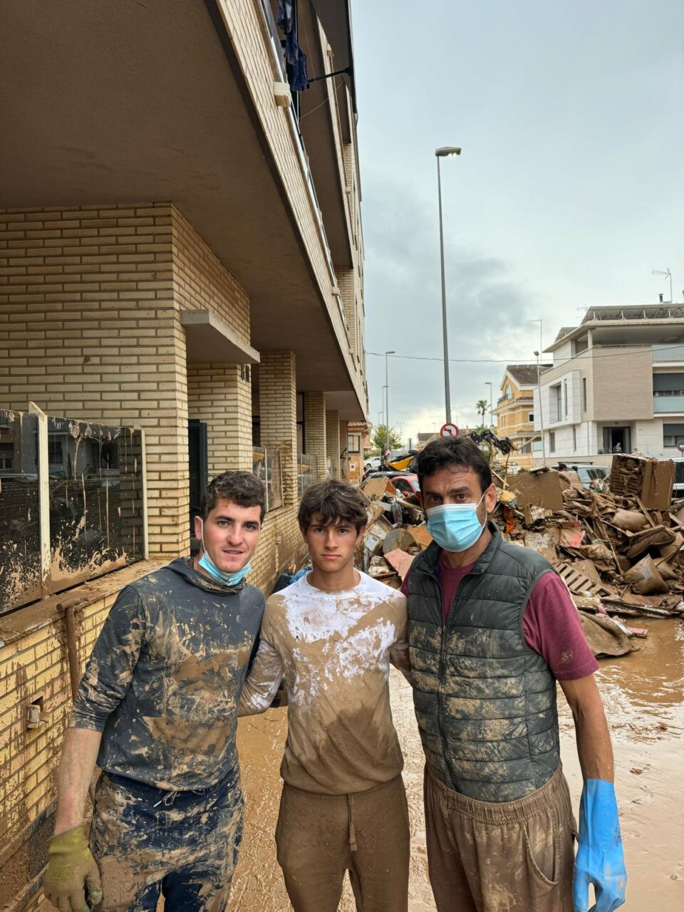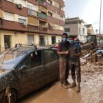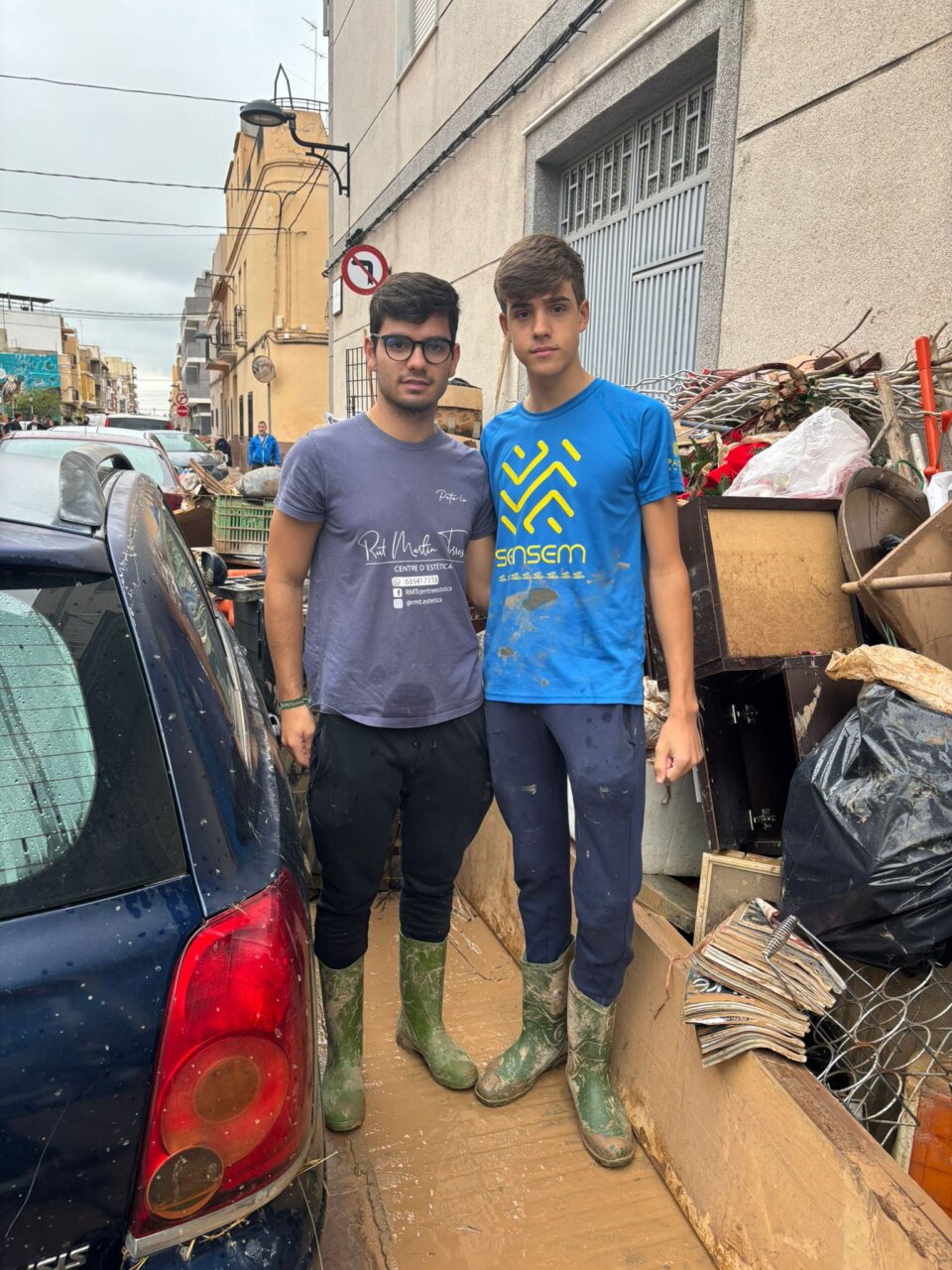 Vicente Barrera, ayudando a limpiar el barro en Catarroja.