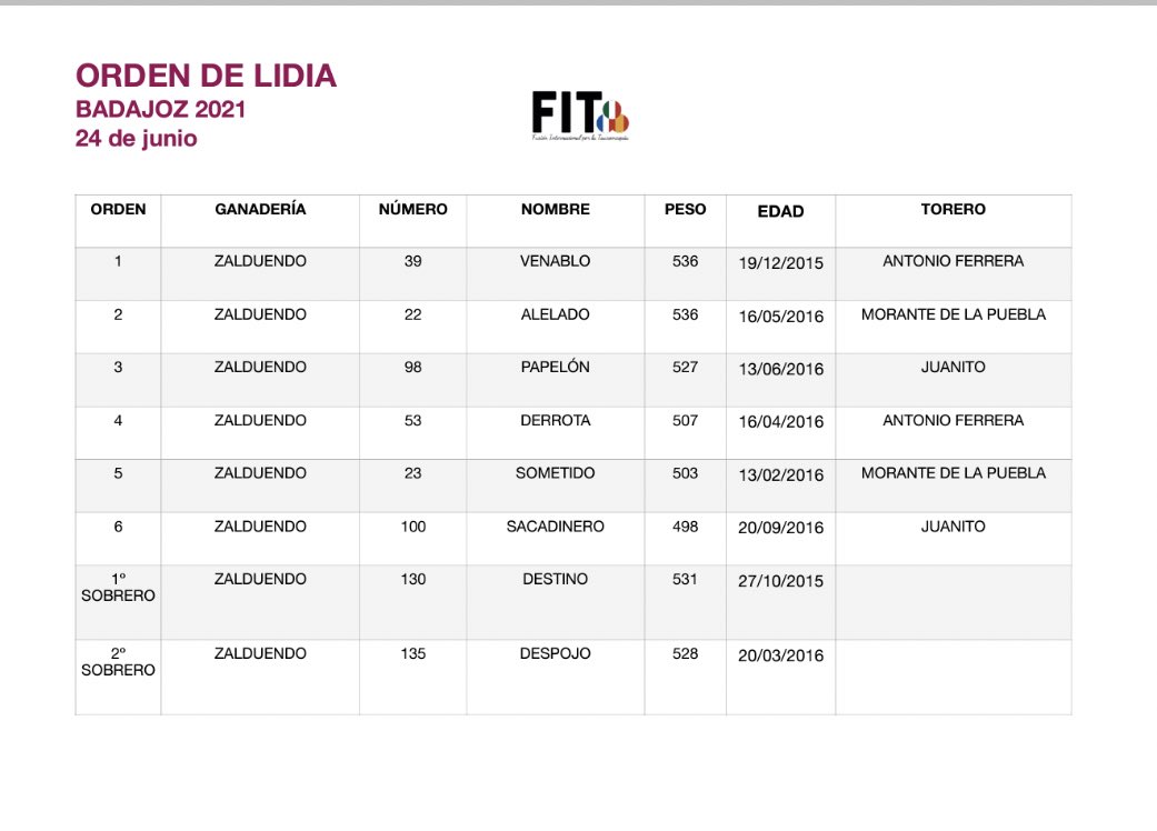 Los toros de Zalduendo para Badajoz