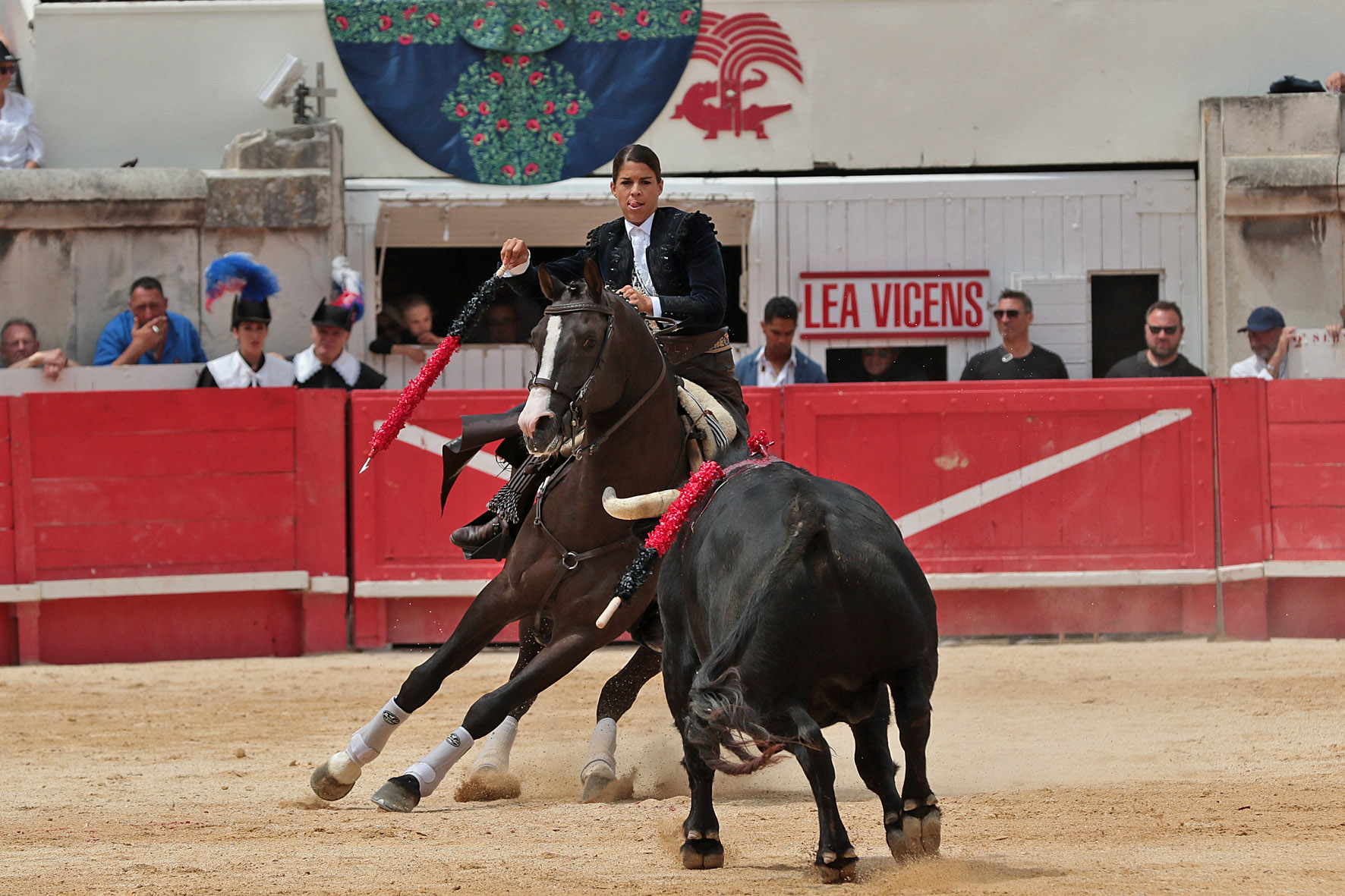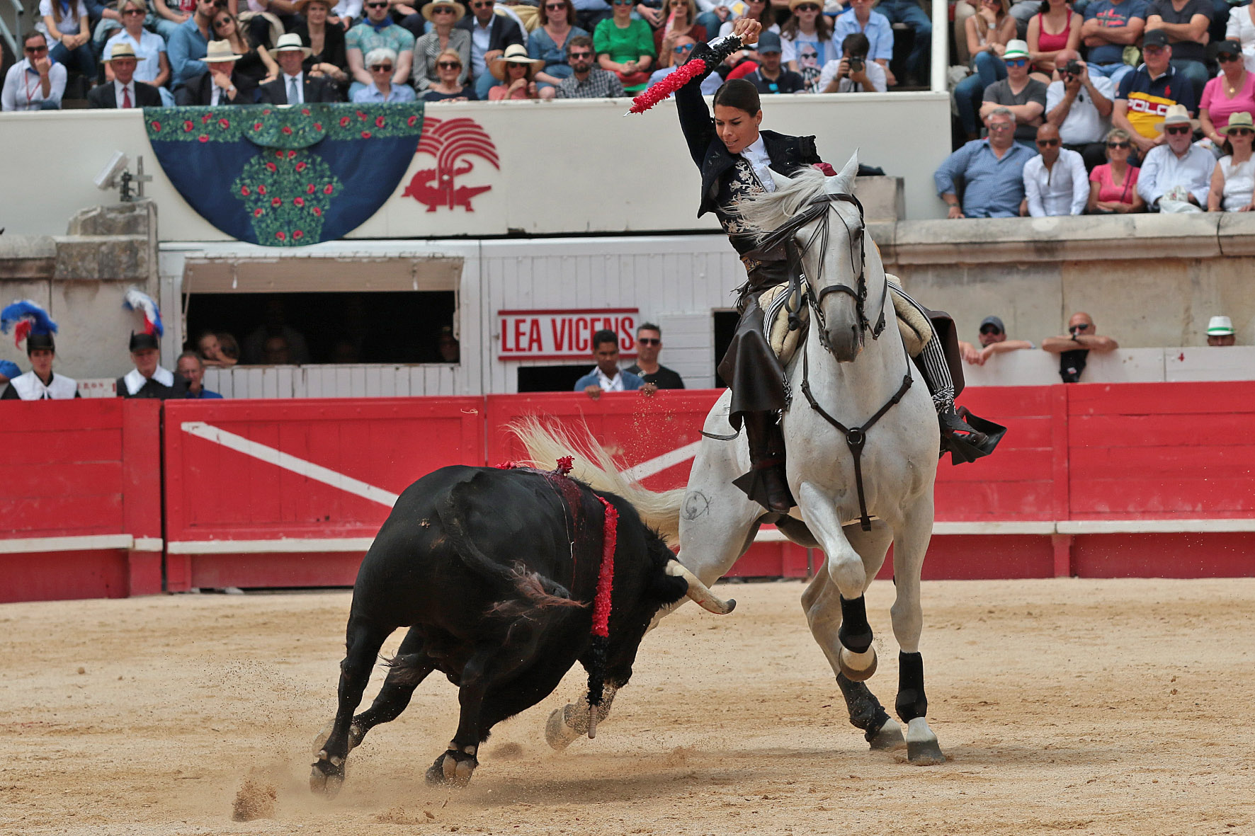 Pablo Hermoso de Mendoza y Lea Vicens pasearon tres orejas cada uno y salieron por la Puerta de los Cónsules junto al joven jinete. Mañana llena de triunfos que contó con una nueva lección magistral de Pablo Hermoso de Mendoza