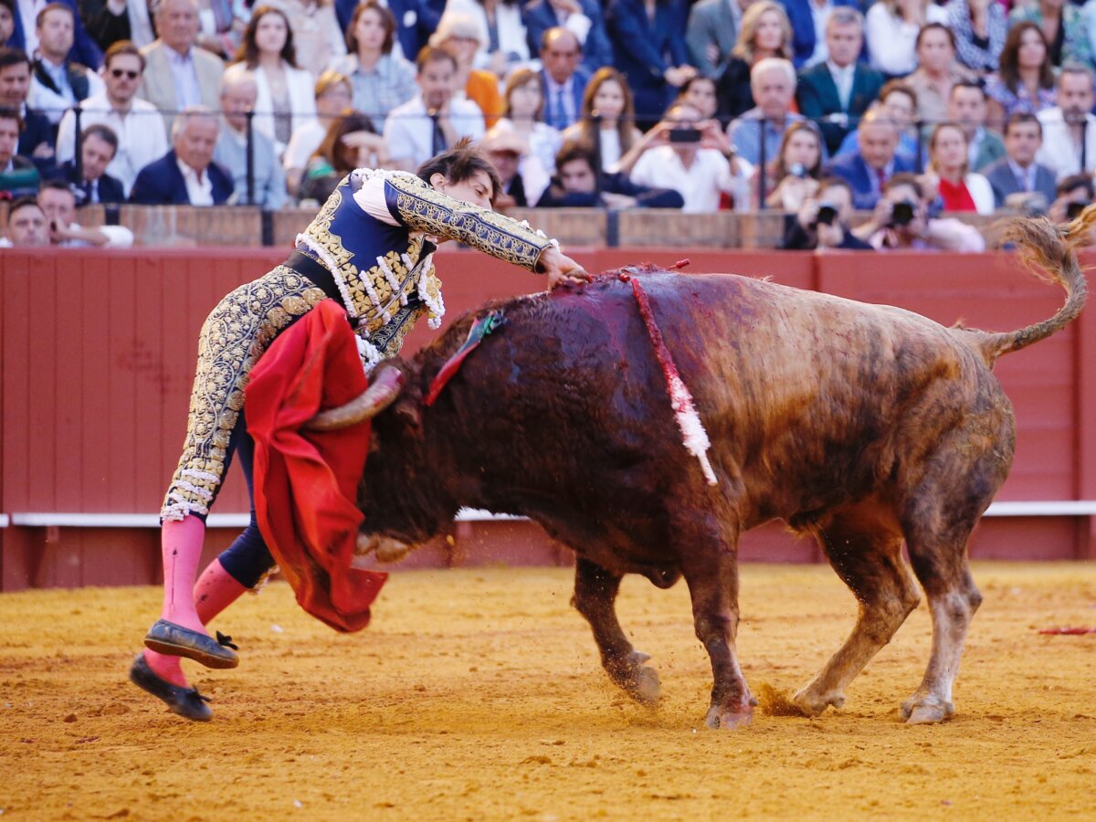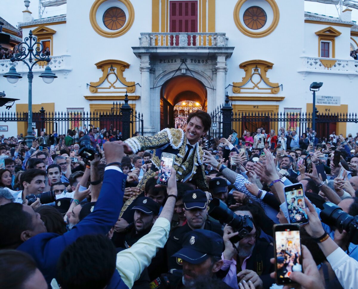 Arjona inmortaliza con carteles de toros la tarde de Roca Rey en Sevilla