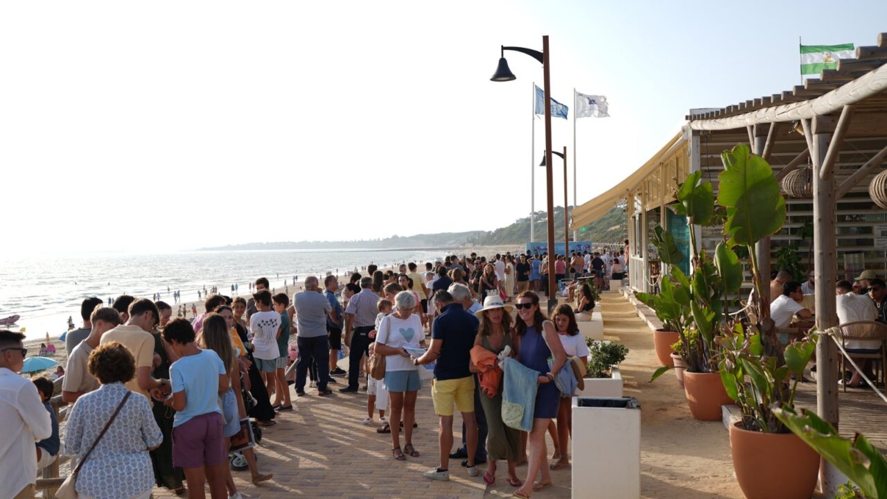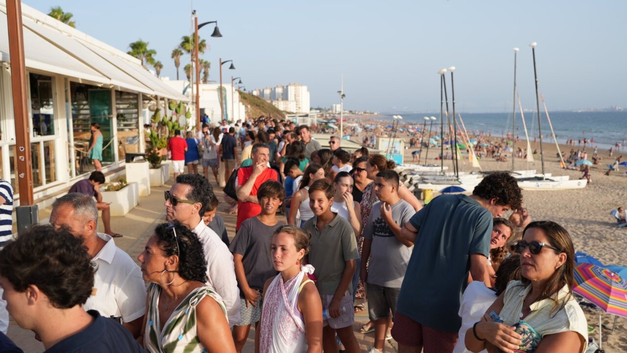 Roca Rey llena en la playa de El Puerto de Santa María en su encuentro con los jóvenes