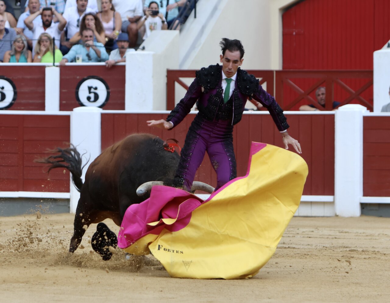Secuencia fotográfica de la dura cogida a portagayola a Fortes en Albacete