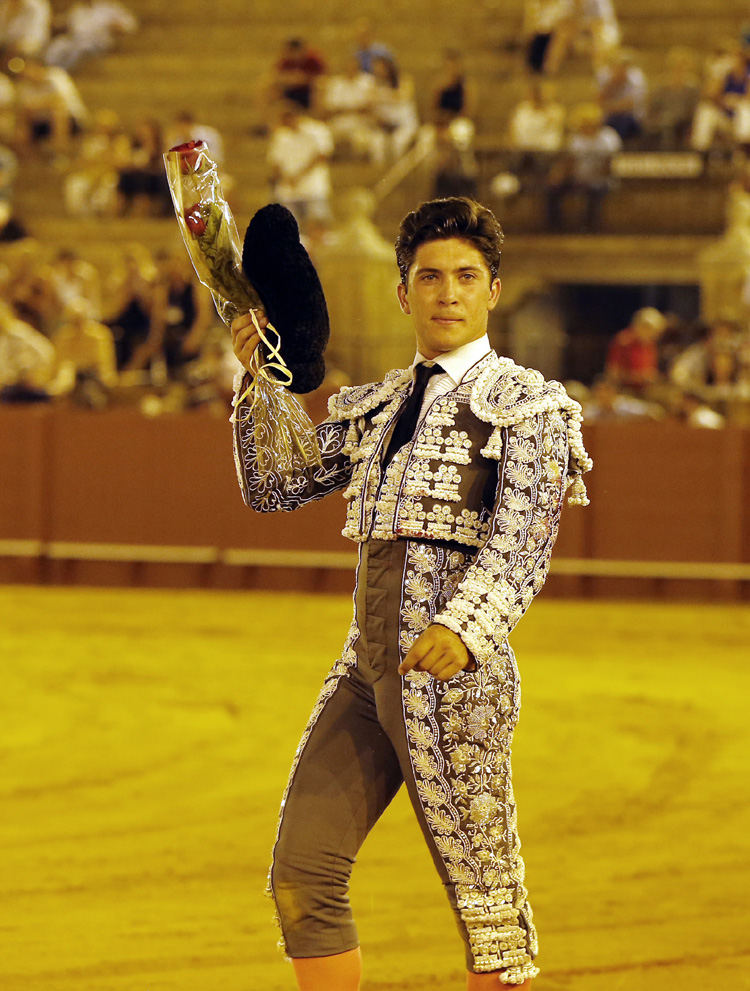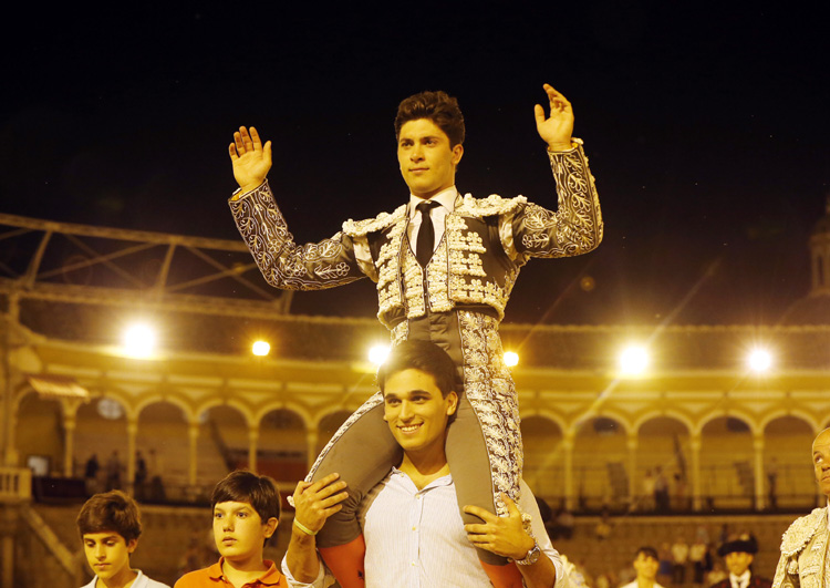 A hombros Rafael González y cornada para Marcos en la novillada nocturna de Sevilla