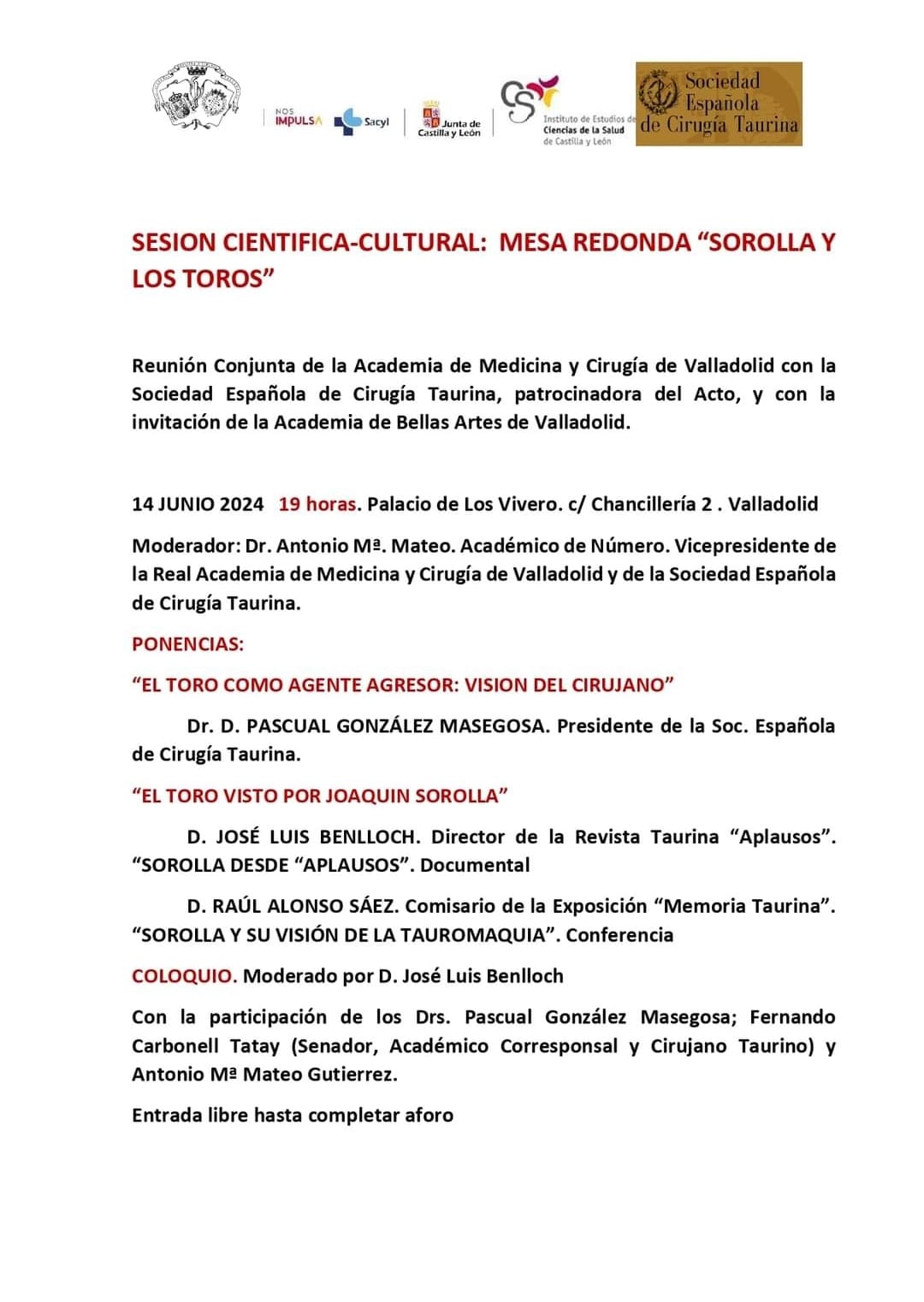 “Sorolla y los toros”, brillante sesión científico cultural en la Real Academia de Medicina y Cirugía de Valladolid