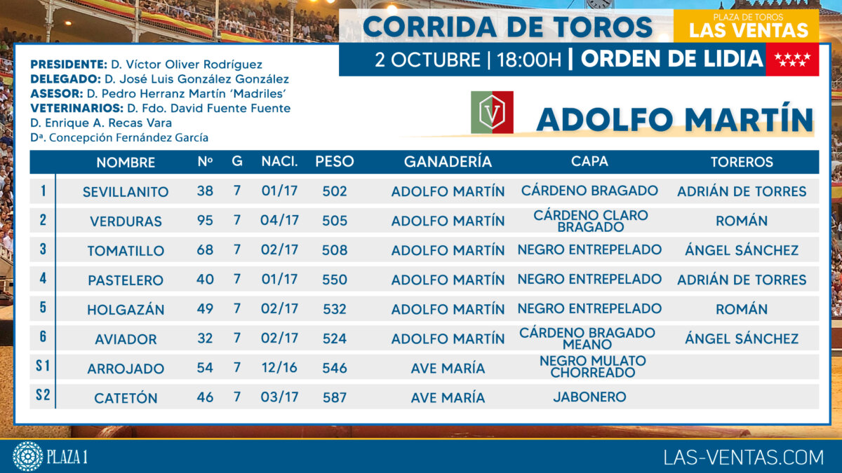Sorteados los toros de Adolfo Martín para Las Ventas