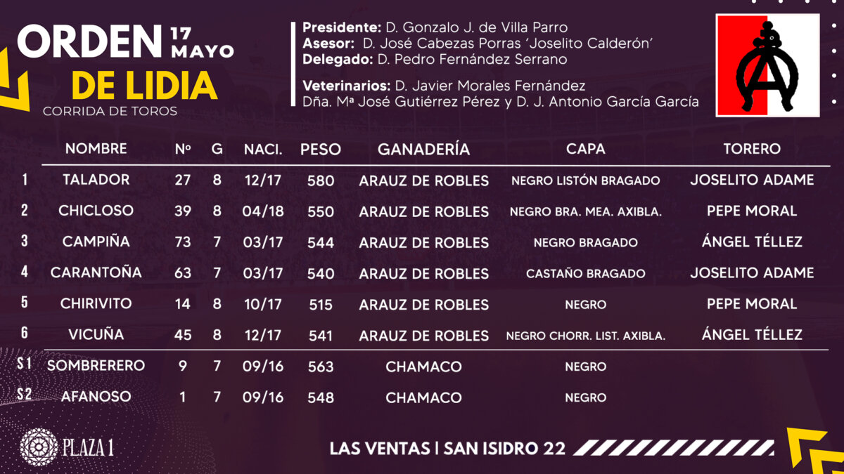 Talador, de Araúz de Robles, abre la tarde en Las Ventas