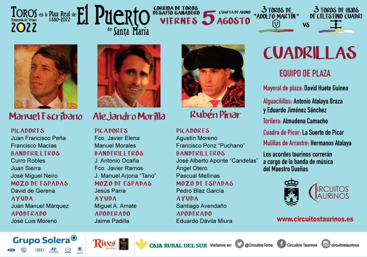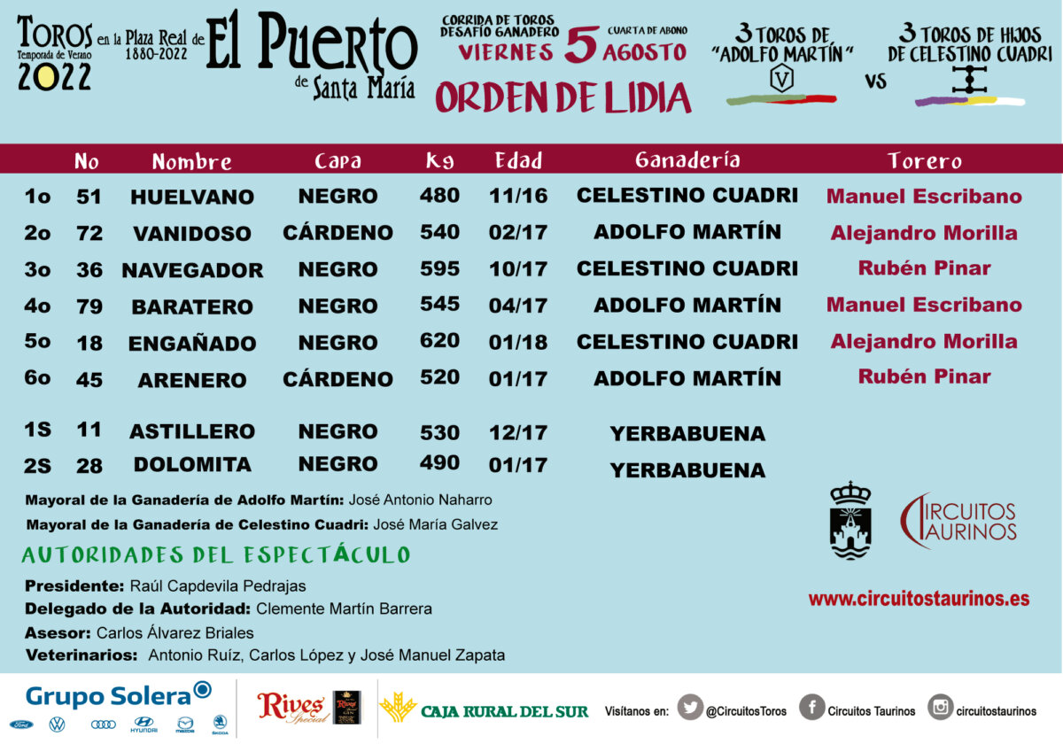 Sorteados los toros de Cuadri y Adolfo Martín para el duelo ganadero de El Puerto