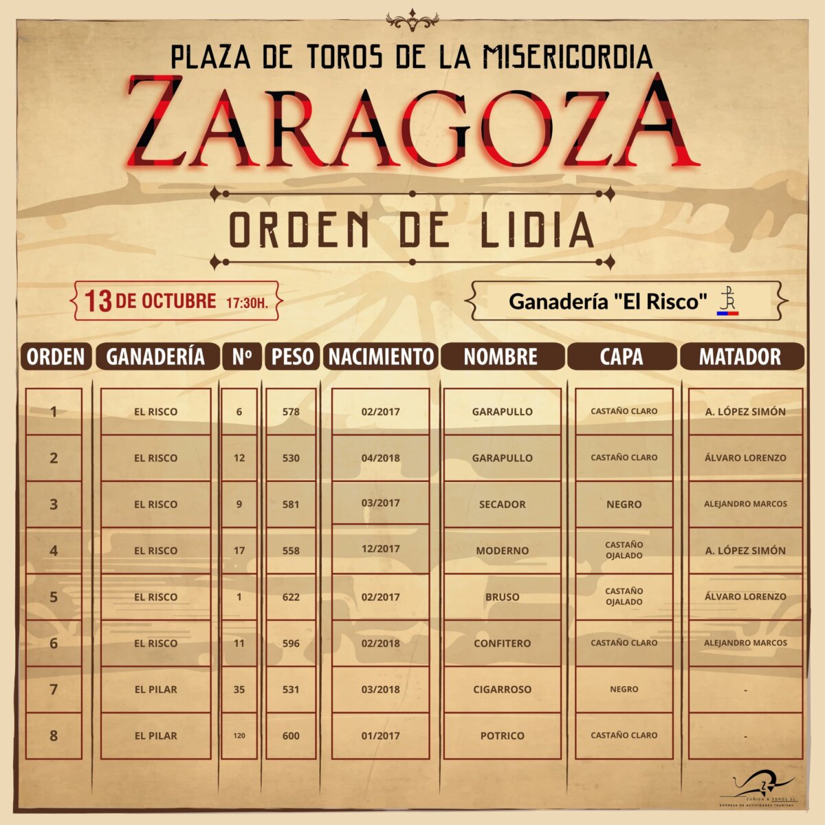 Sorteados los toros de El Risco para esta tarde en Zaragoza