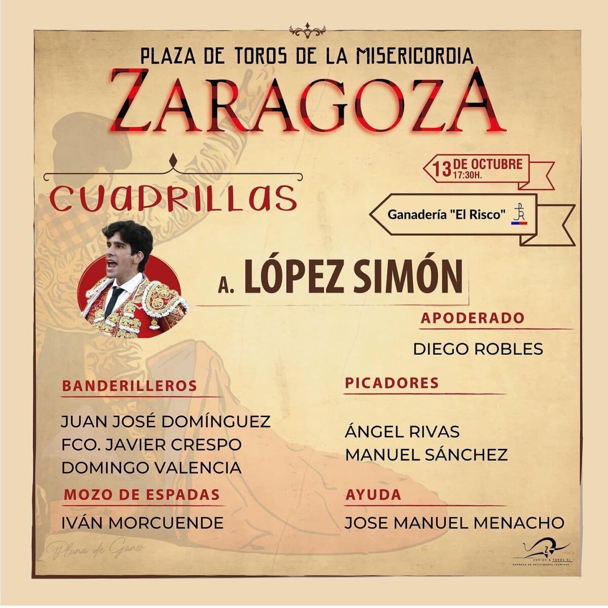 Una corrida de El Risco sustituye a la de Vellosino en Zaragoza
