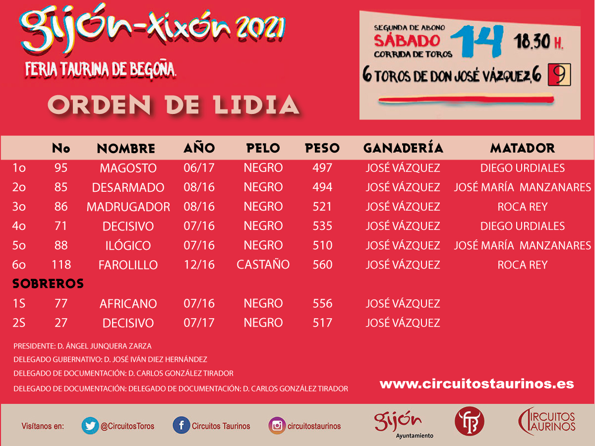 Sorteados los toros de José Vázquez para esta tarde en Gijón