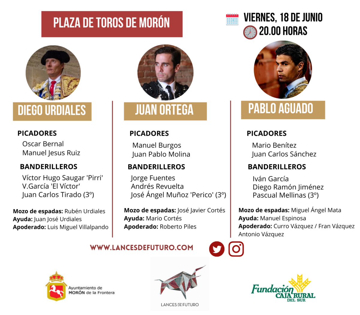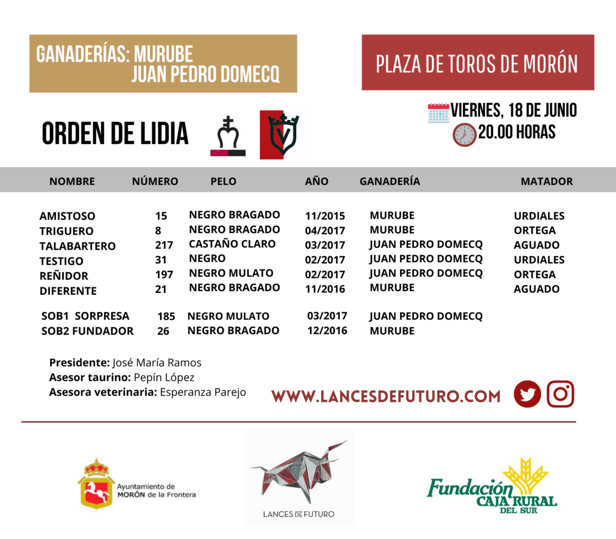 Tres de Murube y tres de Juan Pedro Domecq para el cartel de artistas de Morón de la Frontera
