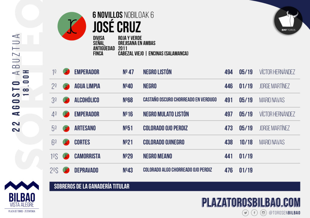 "Emperador" de José Cruz abre la novillada de Bilbao