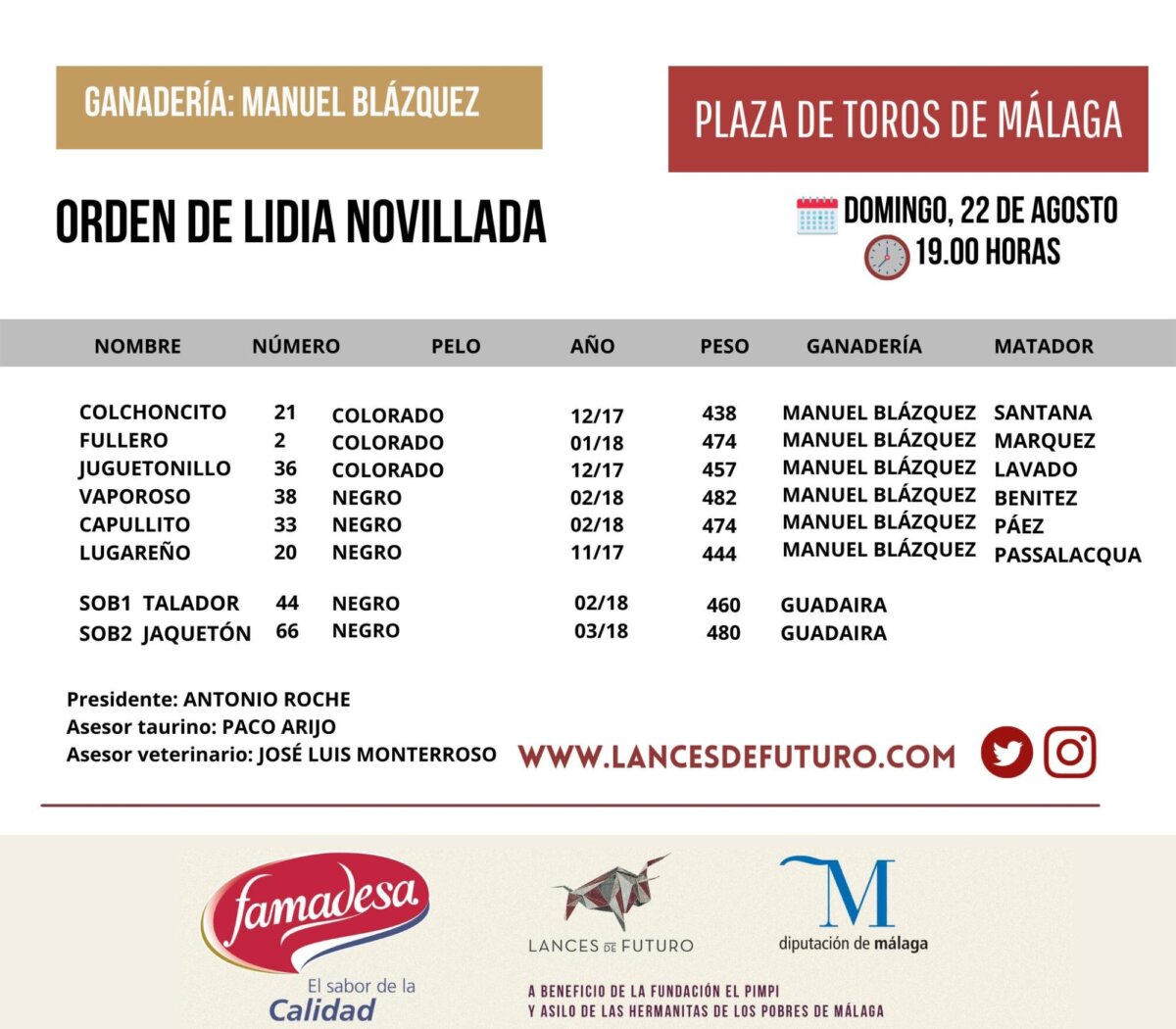 Seis de Manuel Blázquez para seis novilleros en la tarde de Málaga