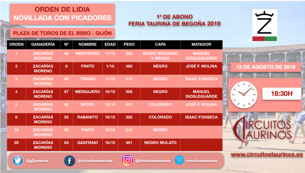 Novillos de Zacarías Moreno para Manuel Diosleguarde, José Francisco Molina e Isaac Fonseca, que debuta con picadores