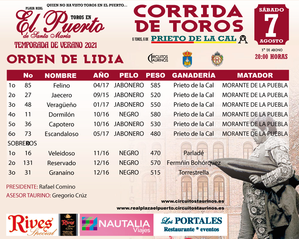 Sorteo. Toros de Prieto de la Cal para Morante de la Puebla en El Puerto.