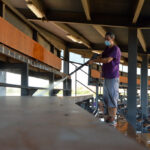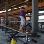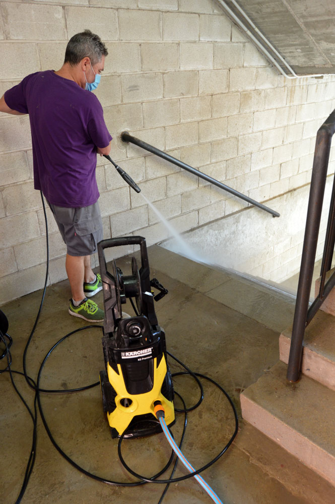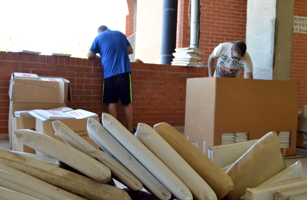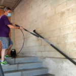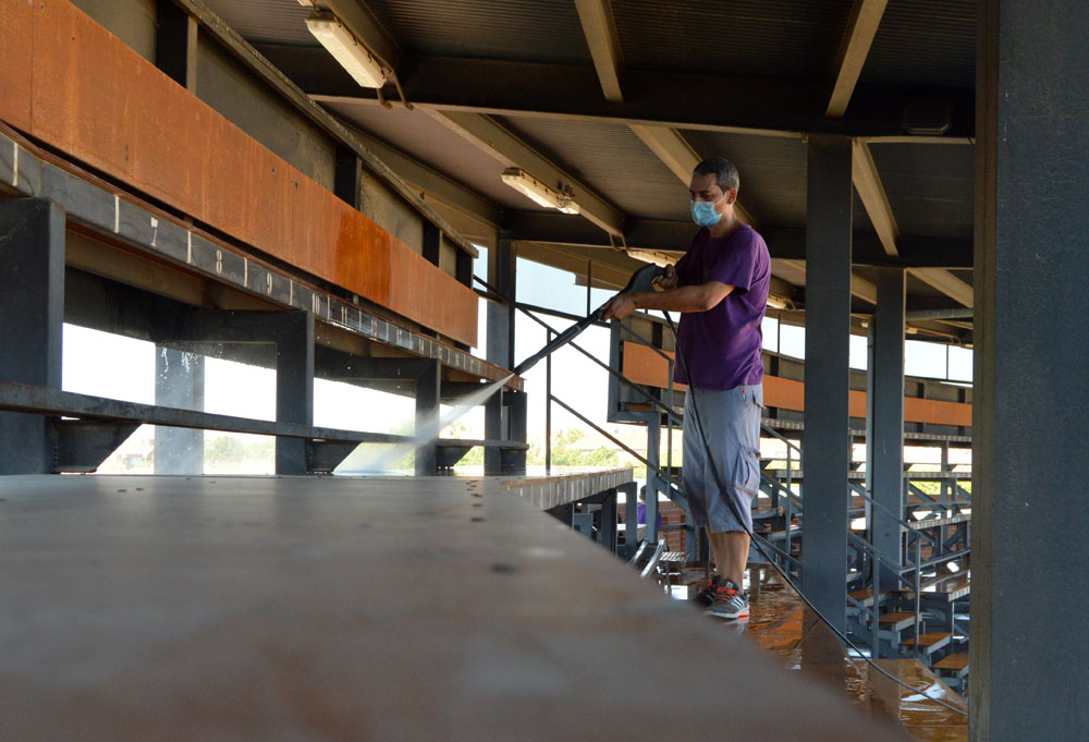 Tareas de desinfección en la plaza de toros de Alcalá de Henares