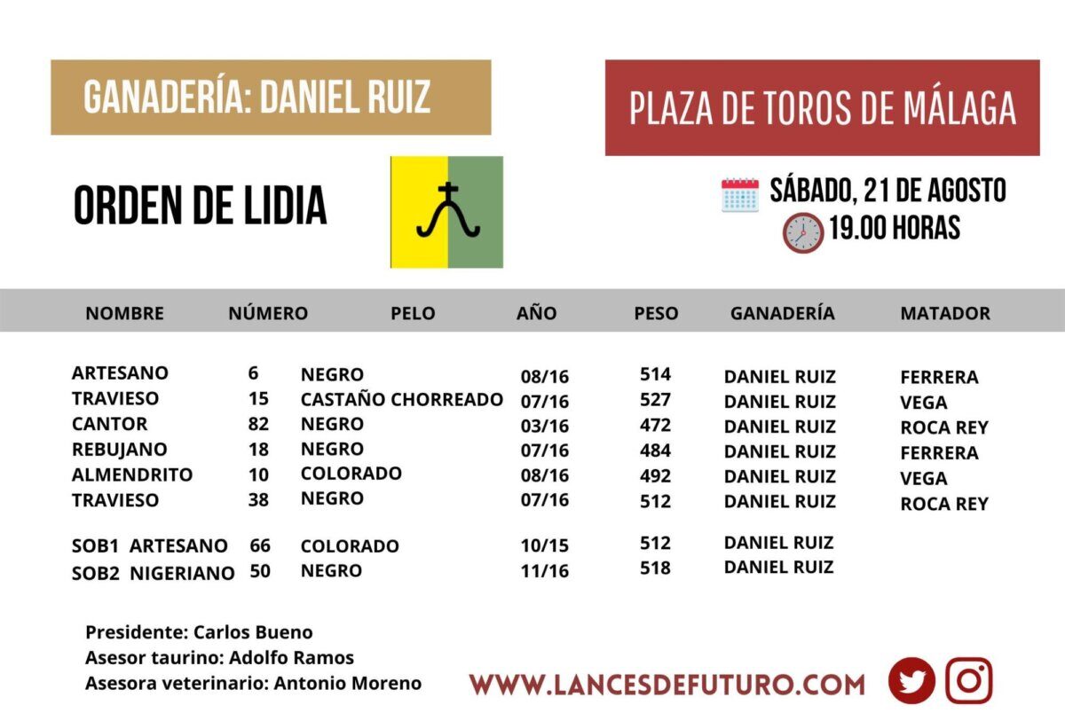 De Artesano a Travieso, los toros de Daniel Ruiz para Málaga