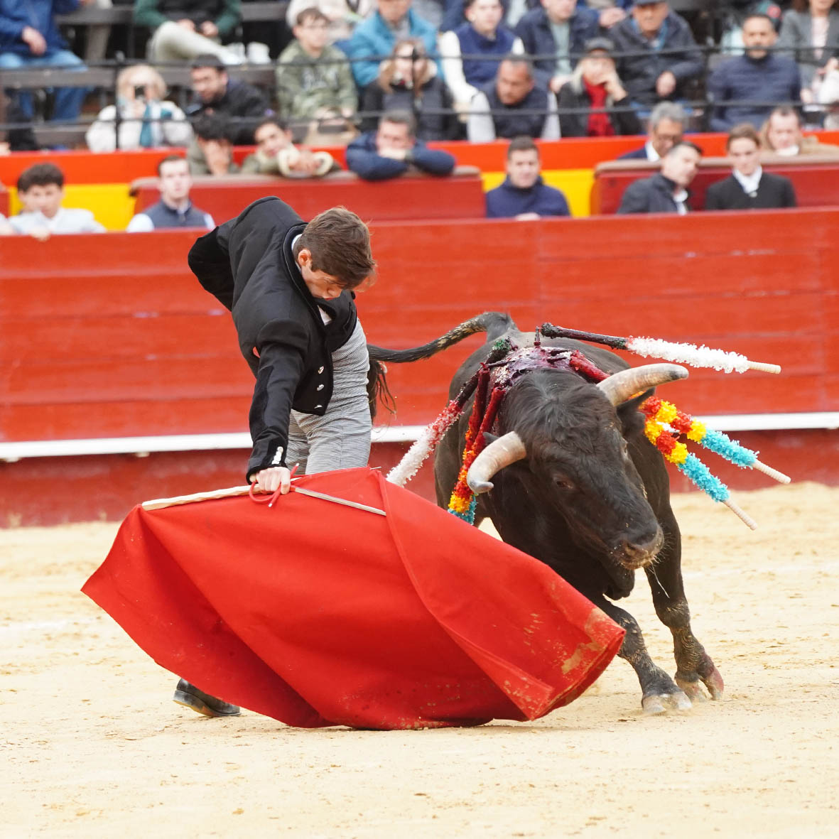 Bruno Gimeno, con la oreja conquistada. Foto: Antonio Vigueras