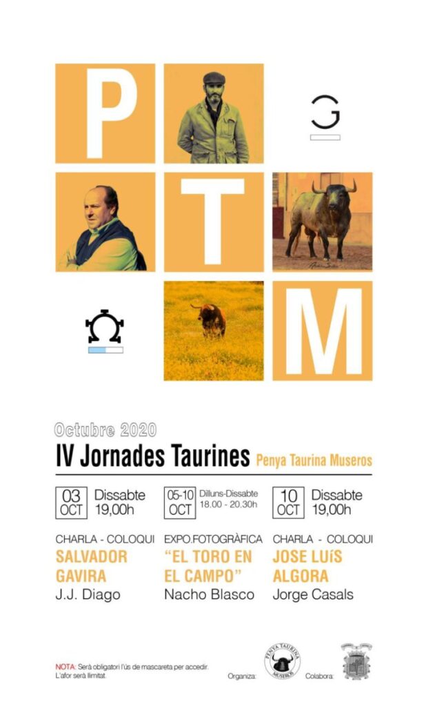 La peña ha programado una exposición fotográfica y dos coloquios, que tendrán como protagonistas a dos ganaderos muy queridos en esta tierra. El sábado 3 de octubre será el turno de Salvador Gavira, coloquio que será moderado por el fotógrafo José Joaquín Diago, mientras que el sábado 10 de octubre participará José Luis Algora, representante y veterinario de la ganadería Partido de Resina. En esta ocasión el acto será moderado por nuestro compañero Jorge Casals. Ambas charlas tendrán lugar a las 19:00 horas en la Casa de la Cultura y será obligatorio el uso de la mascarilla para presenciarlas. El aforo será limitado.