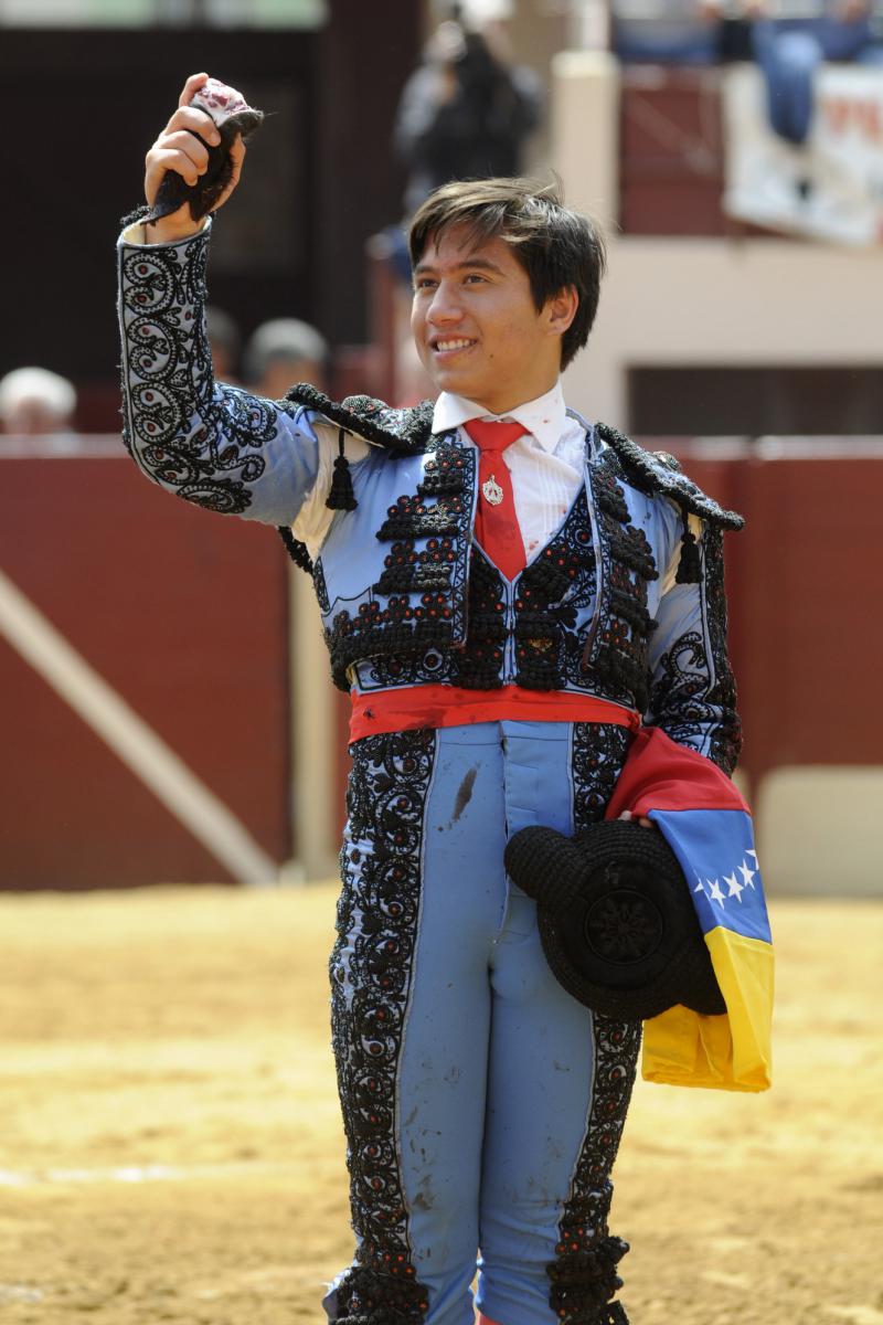 Remontó la matinal en el tercero con un buen toro de la divisa leonesa. Emotivo el tercio de varas con el toro empujando, tras el que saludó el piquero. César Valencia le dio fiesta por el pitón derecho, en una labor corajuda que tuvo altos y bajos pese a la buena condición del animal. Mató mal pero de manera efectiva y fue premiado con una oreja.