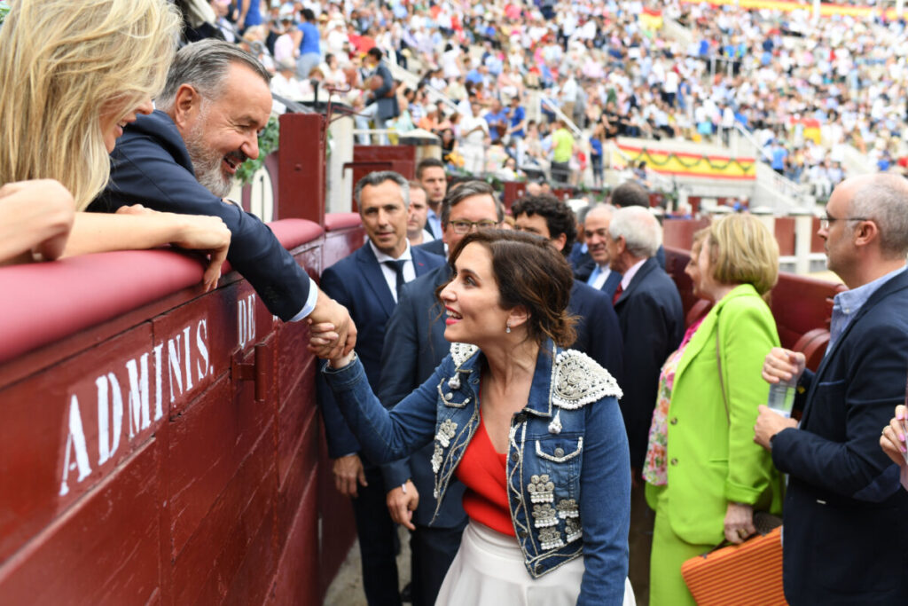 El festejo, que registró un gran ambiente en los tendidos, con más de 18.000 espectadores, congregó también a rostros conocidos de la sociedad madrileña y de la política, entre ellos, el de Isabel Díaz Ayuso, presidenta de la Comunidad de Madrid.