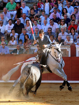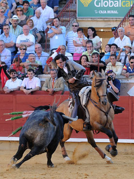 El rejoneador sevillano emborrona con el rejón de muerte una importante faena frente al sexto y el de Tarancón cuaja al mejor astado del encierro santacolomeño de Pallarés.