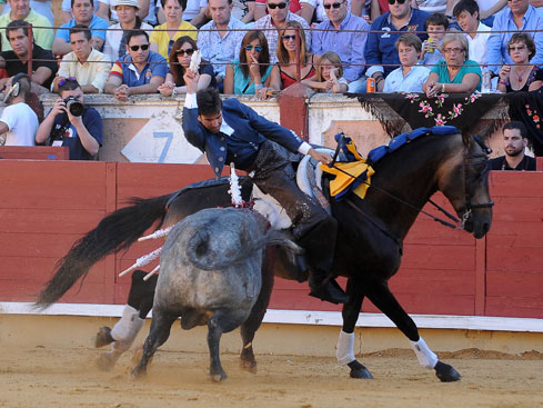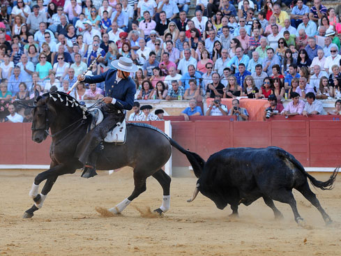 Ventura cortó una oreja del segundo, un animal manejable y noble, que no terminó de entregarse y anduvo en el límite de la raza. Sensacional el jinete sobre Nazarí, templando en galopes a dos manos y pegando verdaderos muletazos. Pureza sobre Oro, batiendo en la cara y brillando sobre Toronjo en un gran par a dos manos. Lidia precisa, sin apretar, coronada de un rejonazo. Se le pidió la segunda oreja.