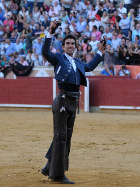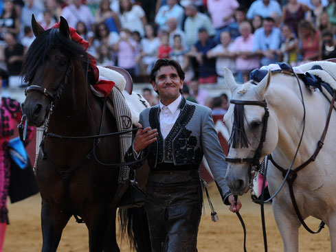 Galán no quiso quedarse atrás y le cortó las dos orejas al quinto, un buen toro de Pallarés, con mucha clase, fijeza y movilidad. A buen nivel el conquense, que cuajó una labor compacta y ligada. Hubo temple sobre Ojeda, torería y determinación a lomos de un vistoso Apolo imprimiendo profundidad, culminando sobre Artista clavando rosas. Fulminante rejonazo y el doble trofeo a sus manos.