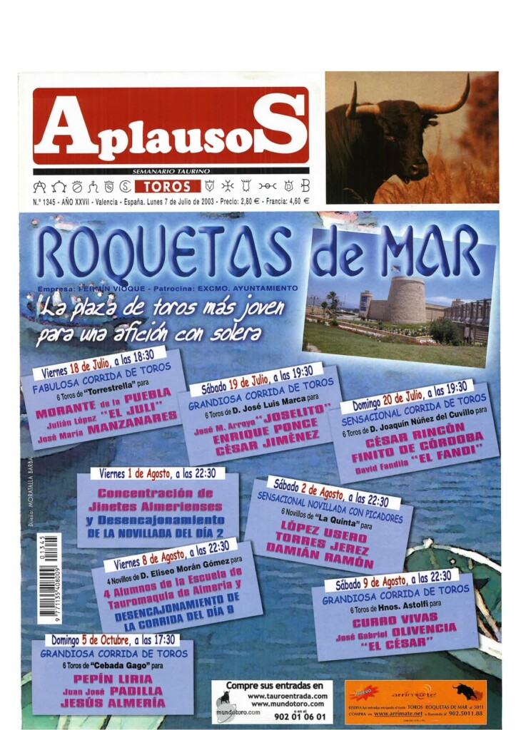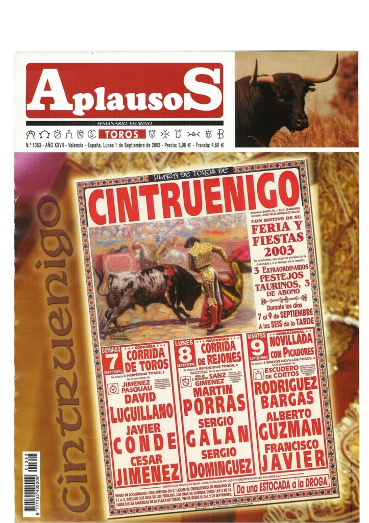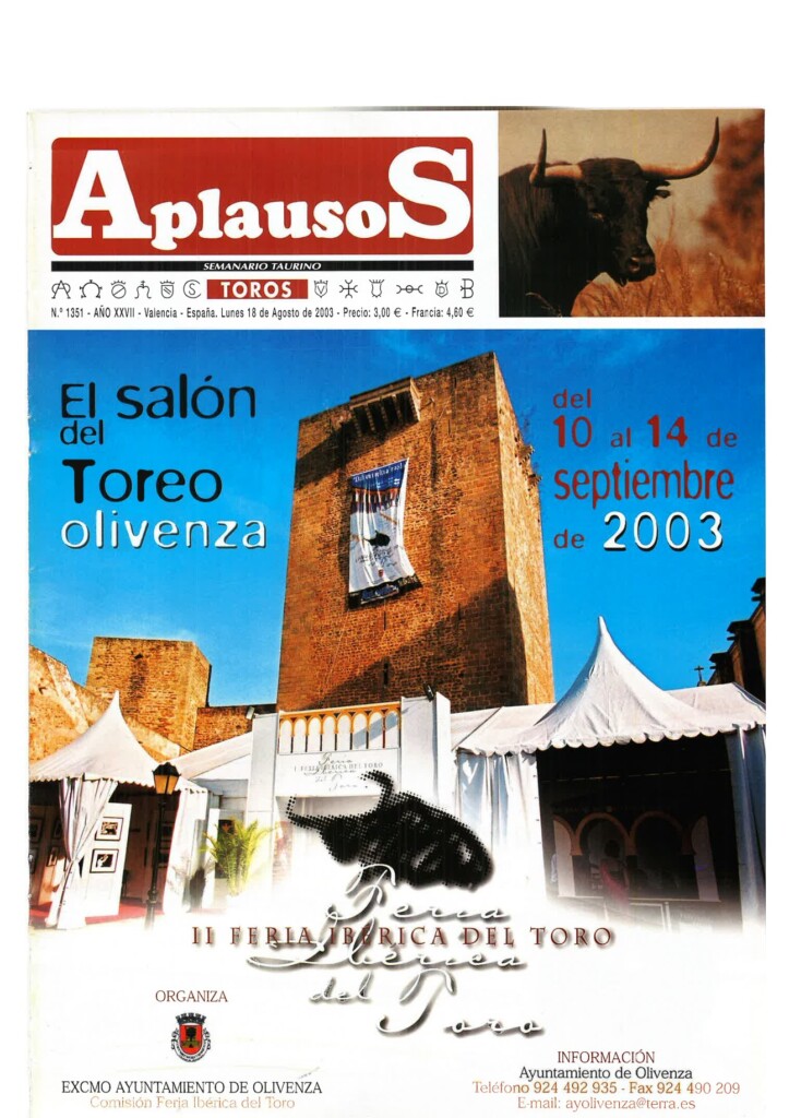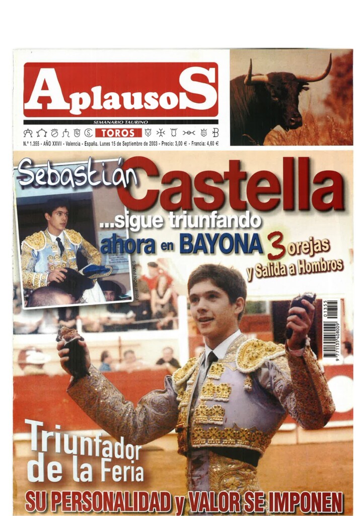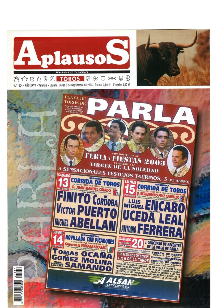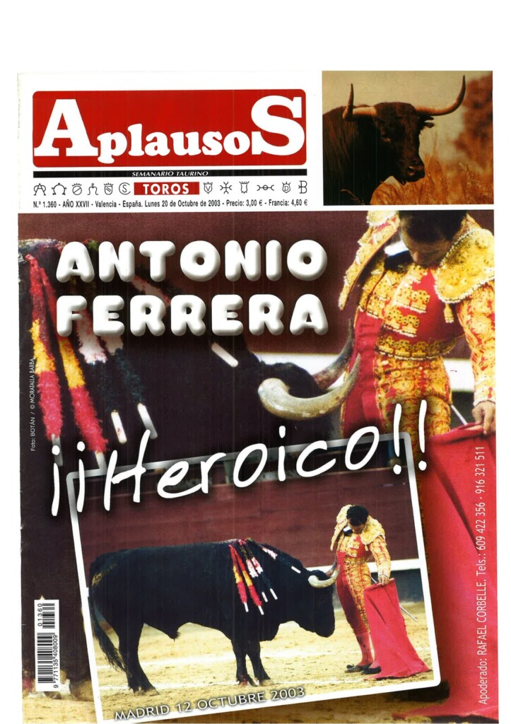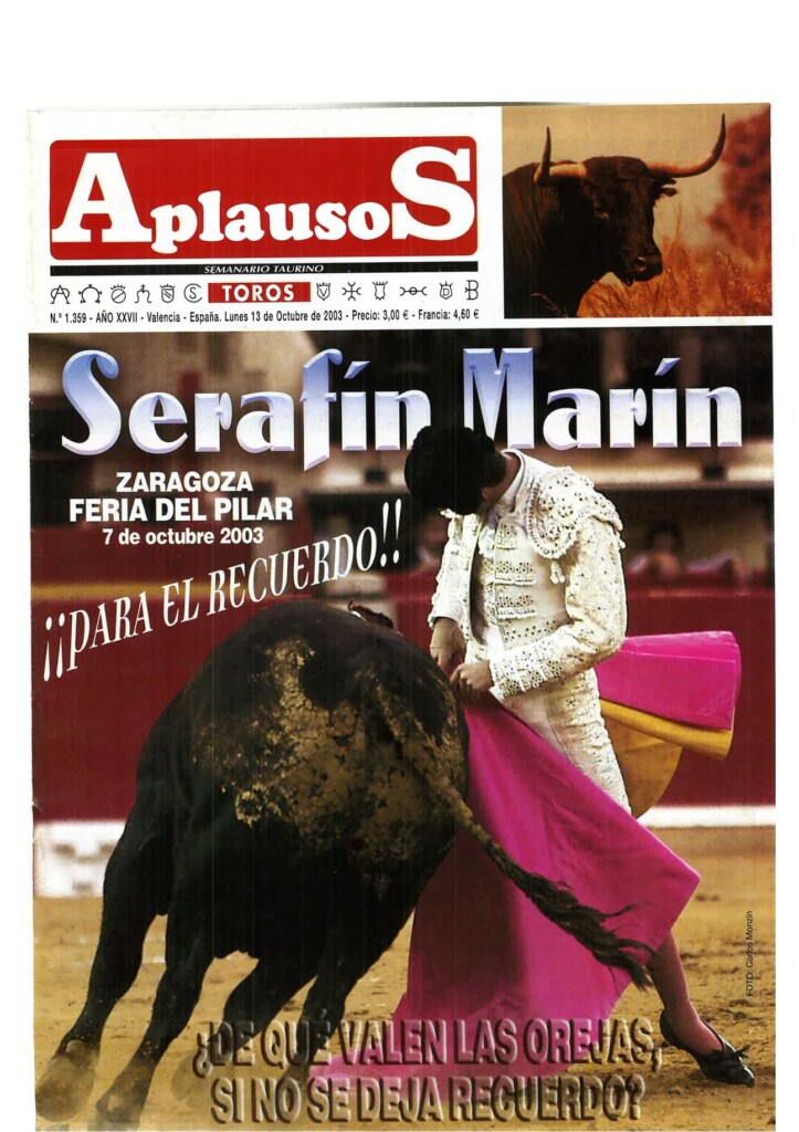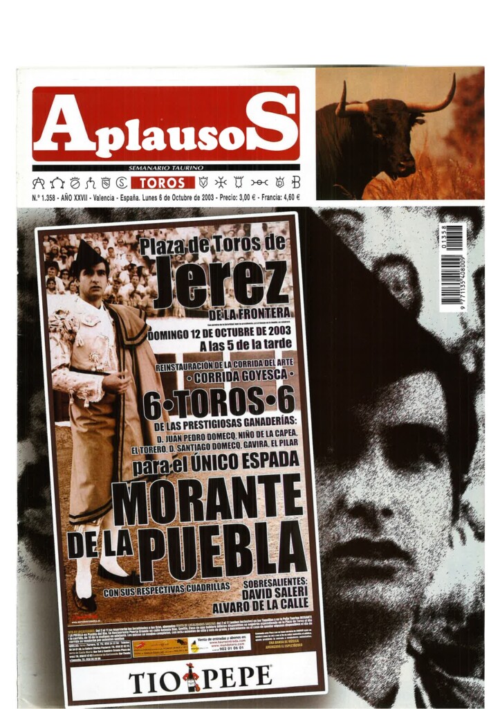 Número 1360 | 20/10/2003 Salvador Vega: "Sería muy triste que un torero se jugase la vida y no ganase dinero"