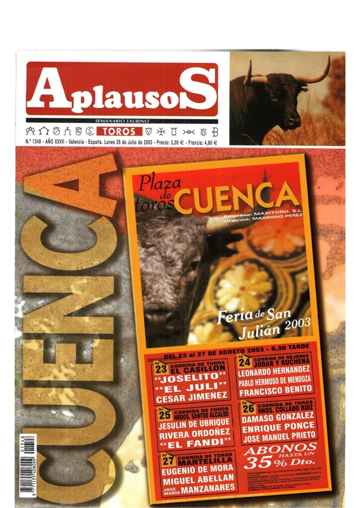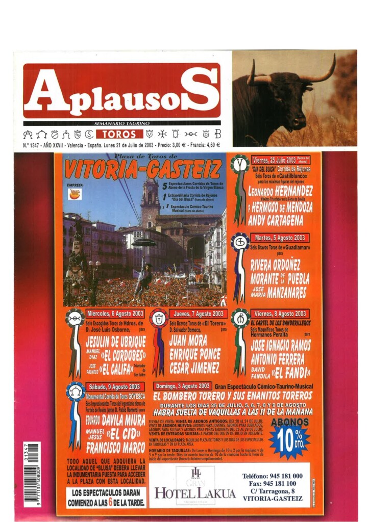 Número 1347 | 21/07/2003 Dávila Miura: "En el toreo hay momentos que te hacen pensar que eres un privilegiado"