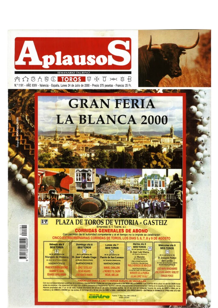 Número 1185 | 12/06/2000 Extraordinaria faena de El Califa a un gran toro de Dolores Aguirre en Madrid