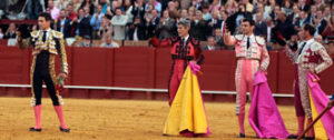 Miurada sin bravura, sin casta, sin nobleza y lo que es peor sin fuerza, para tres héroes. Seis tigres mansos con cuernos de la legendaria ganadería –leyenda que se basa en su rastro sangriento- y un criminal...