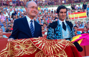 Morante de la Puebla ha recibido al término del paseíllo de este jueves en Málaga el capote de paseo al triunfador de la feria de 2015. El sevillano ha recibido el galardón de manos del Alcalde de la ciudad, Francisco de la Torre Prados.