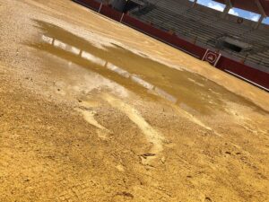 La corrida de toros que iba a celebrarse este sábado en Morón de la Frontera ha tenido que suspenderse debido a la lluvia que ha dejado el ruedo en mal estado. En el festejo estaban anunciados Finito de Córdoba, Juan José Padilla y El Fandi.