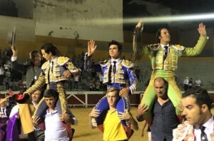 Tacabamba (Perú). Domingo 15 de septiembre de 2018. Toros de San Simón y San Pedro. Pedrito Portugal, silencio y dos orejas; Salvador Cortés, oreja y oreja; Ángel Puerta, oreja y dos orejas y rabo simbólicos. El sexto toro fue premiado con el indulto.