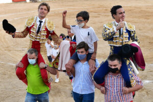 Cuatro orejas para el francés y tres y rabo simbólico para el peruano, que indulta a Potrico, del Pilar