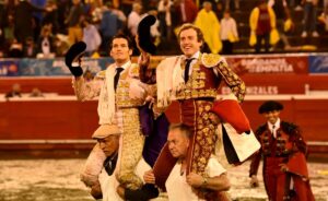 Un buen encierro de Santa Bárbara, encastado y dispar de presentación, fue aprovechado por los españoles para conseguir el triunfo, cada uno desorejando en un turno aunque con contenidos diferentes