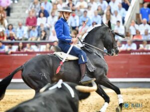 El jinete navarro se llevó tres orejas en su confirmación de alternativa en Las Ventas, en la que le acompañaba Lea Vicens ante astados de Carmen Lorenzo y El Capea