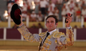 El mexicano encandiló a las peñas, paseó un total de tres orejas y abrió la puerta grande en su presentación en esta plaza tras aprovechar una notable corrida de Antonio Bañuelos; el aragonés destacó al natural y mostró su cara más épica entrando a matar sin muleta, cortando una oreja al igual que Ferrera