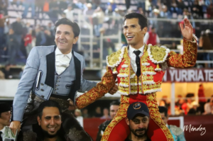 El torero colombiano pasea los trofeos simbólicos de Legionario, de Juan Bernardo Caicedo, y triunfa junto al extremeño, que desoreja a su primero, en una tarde de auténtico delirio