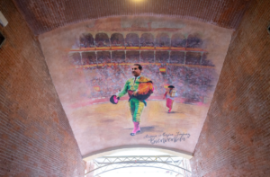 Se han instalado tres vinilos decorativos a color en los techos de los patios de cuadrillas, puerta grande y patio de arrastre, respectivamente, de estos tres maestros