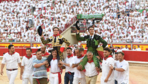 Fenomenal faena del torero de Gerena en Pamplona; dos orejas con fuerte petición de rabo y dos vueltas al ruedo mientras al miureño se le dio la vuelta al ruedo con la plaza en pie