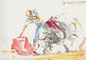 El pintor peruano Humberto Parra retrató la épica de Manuel Escribano en Sevilla. "Cuando ser torero tiene otro sentido" se titula la obra que ilustra lo que fue la séptima de abono de la temporada de la Maestranza.