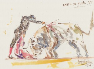 Las obras de El Apunte de Humberto Parra para la corrida de farolillos de Sevilla ilustran hoy la importante tarde de Emilio de Justo y la gran faena de El Cid a Dorado, de La Quinta. Así vio la undécima de abono de la Maestranza el pintor peruano.