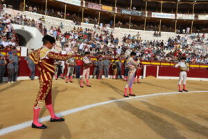Almoguera (Guadalajara). Sábado, 4 de mayo de 2024. Corrida mixta. Toros de El Capea para rejones y toros y novillos de Montalvo para la lidia a pie. Diego Ventura, oreja y oreja; Luis David Adame, oreja y ovación; y Marco Pérez, oreja y oreja.
